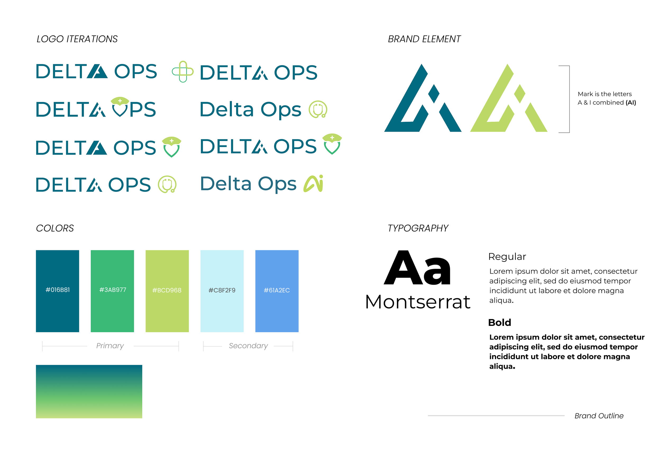 I created a brand system for the startup, Delta Ops, based in Indianapolis. Delta Ops, an AI powered staffing resource, was an IU LAB cohort member. They asked me to create the brand identity as well as the product prototype.